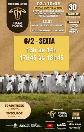 1º De Olho na Fazenda Terra Nobre vende a preço fixo 50 matrizes paridas e 30 touros nelore PO no Canal do Boi