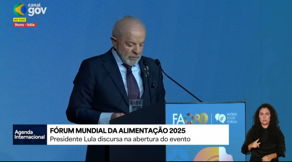 O presidente Luiz Inácio Lula da Silva participou, nesta segunda-feira, 13 de outubro, em Roma, da abertura do Fórum Mundial da Alimentação 2025, principal evento anual da Organização das Nações Unidas para a Alimentação e a Agricultura (FAO). A cerimônia, que ocorre dois meses após o anúncio da saída do Brasil do Mapa da Fome, marcou também as comemorações pelos 80 anos da FAO.