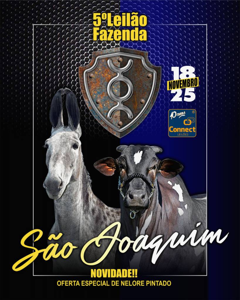 Hoje às 20h no Agro Canal, você confere o 5º Leilão Fazenda São Joaquim, com oferta de tropa de serviço e nelore pintado. A realização é da Connect Leilões.
