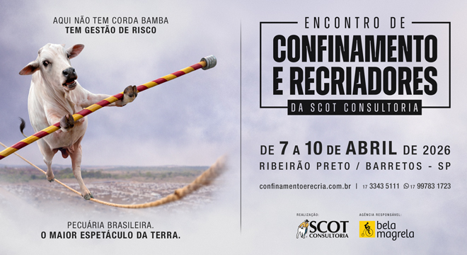 Informação, relacionamento, atualização e proximidade com os maiores nomes da pecuária: o Encontro de Confinamento e Recriadores reúne tudo isso em apenas dois lugares. Em Ribeirão Preto-SP, no Multiplan Hall, e em Barretos-SP, no Confinamento Monte Alegre, a Scot Consultoria promove palestras, oficinas e estações de visita que proporcionam uma imersão completa no cenário da pecuária nacional, entre os dias 7 e 10 de abril de 2026.
