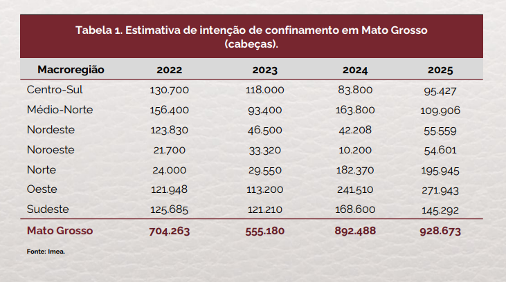 Os dados refletem a amostra de informantes do Imea no 3º Levantamento das Intenções de Confinamento de 2025, concluído em outubro, e não constituem censo estadual.