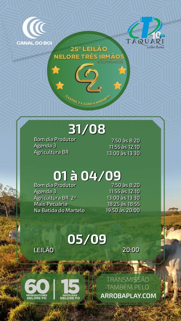 Para conhecer a agenda de leilões do Canal do Boi e Agro Canal, acesse SBA Leilões.