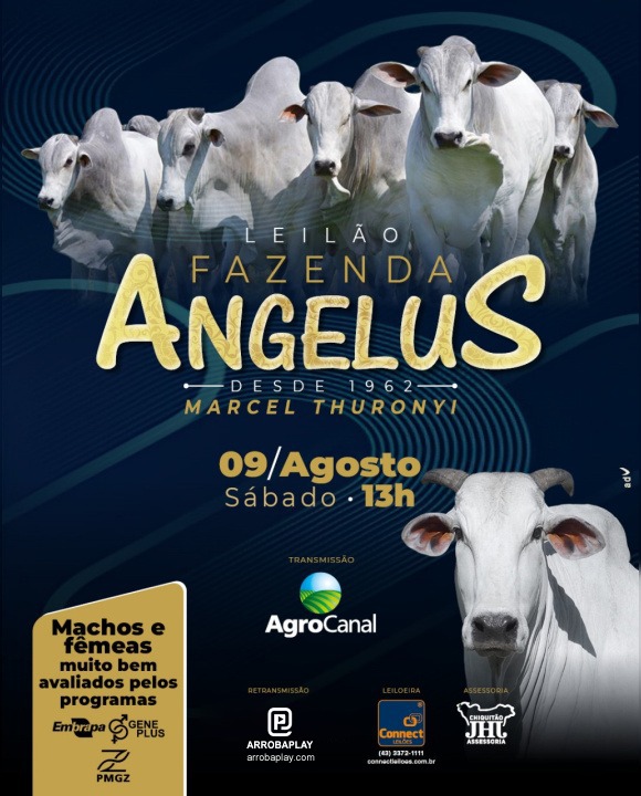 Hoje às 13h no Agro Canal, você confere o Leilão Fazenda Angelus. Oferta de machos e fêmeas muito bem avaliados pelos programas, Embrapa, Geneplu e PMGZ. A realização é da Connect Leilões.