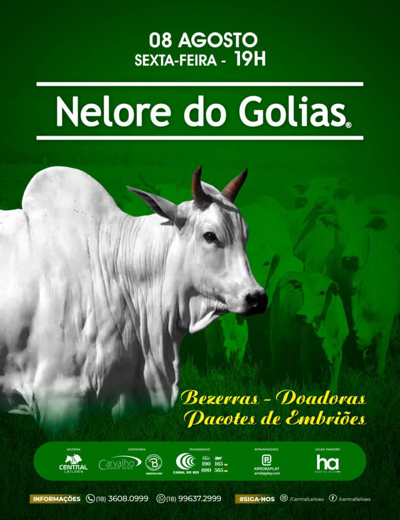 A Central Leilões realiza nesta sexta-feira, dia 8 de agosto às 19h pelo Canal do Boi, o Leilão Nelore do Golias. Oferta de bezerras, doadoras e pacotes de embriões.