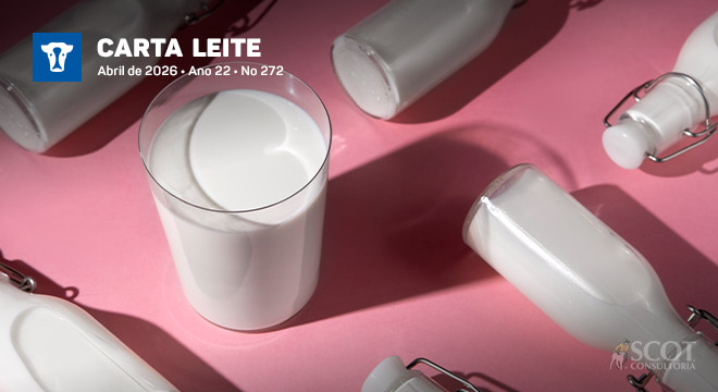 O cenário atual difere do observado no início do ano passado. Embora ainda haja reflexos do crescimento da produção, esse movimento começa a perder força com a entressafra. De acordo com o Índice de Captação de Leite da Scot Consultoria, a captação caiu 1,4% em janeiro de 2026 frente a dezembro de 2025. A sequência de preços baixos ao longo dos últimos meses comprometeu as margens e levou à redução dos investimentos na atividade. Com isso, a menor disponibilidade de leite no mercado começa a impactar os preços ao produtor, que reagiram neste início de ano.