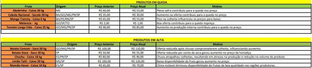 Confira o boletim semanal da CEASA/MS – de 29 de setembro a 4 de outubro